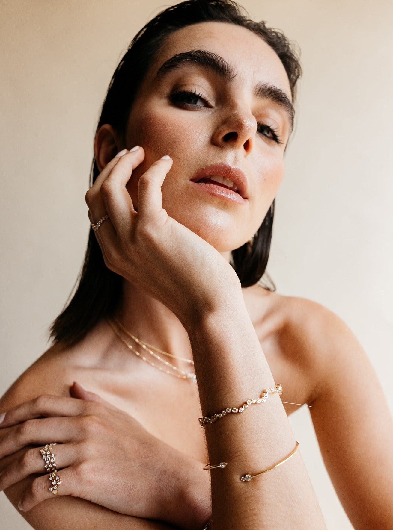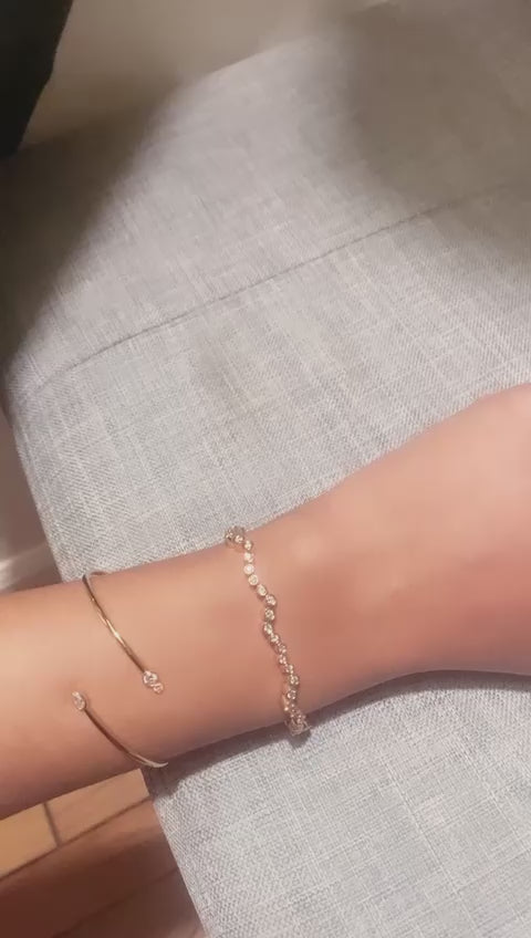 Our Onda Tennis Bracelet is handcrafted in 18k yellow gold with 1.5ct round brilliant-cut diamonds.