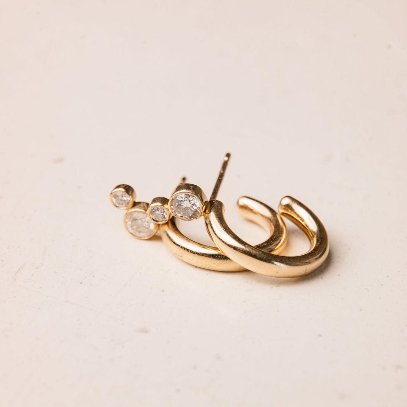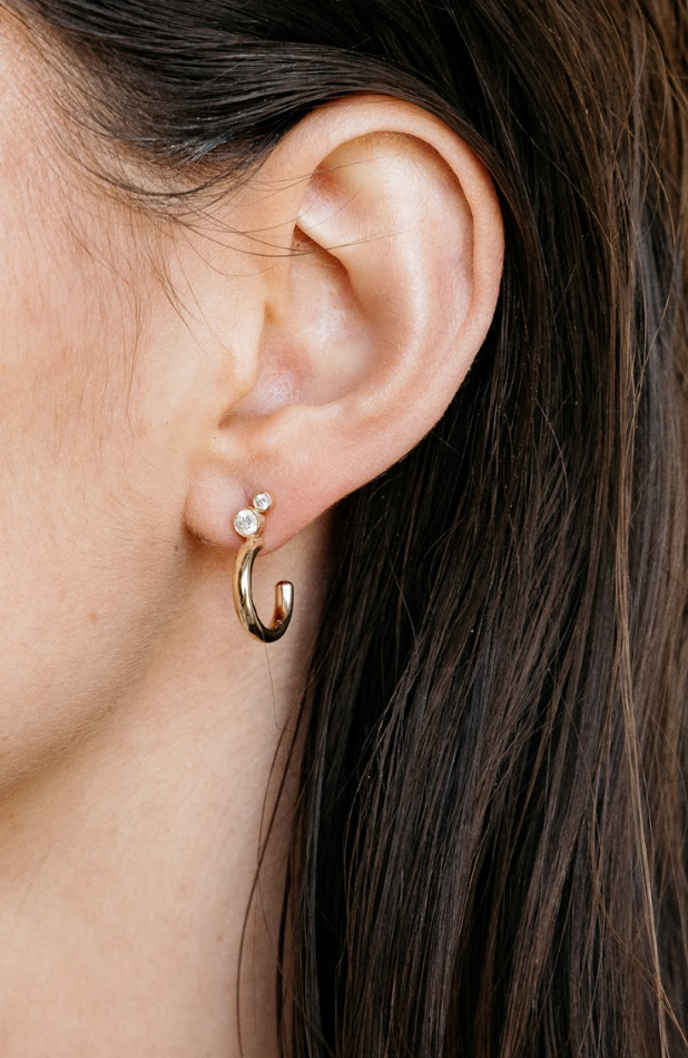 Our Twilight Hoops are handcrafted in 18k yellow gold with 2 round brilliant-cut diamonds.