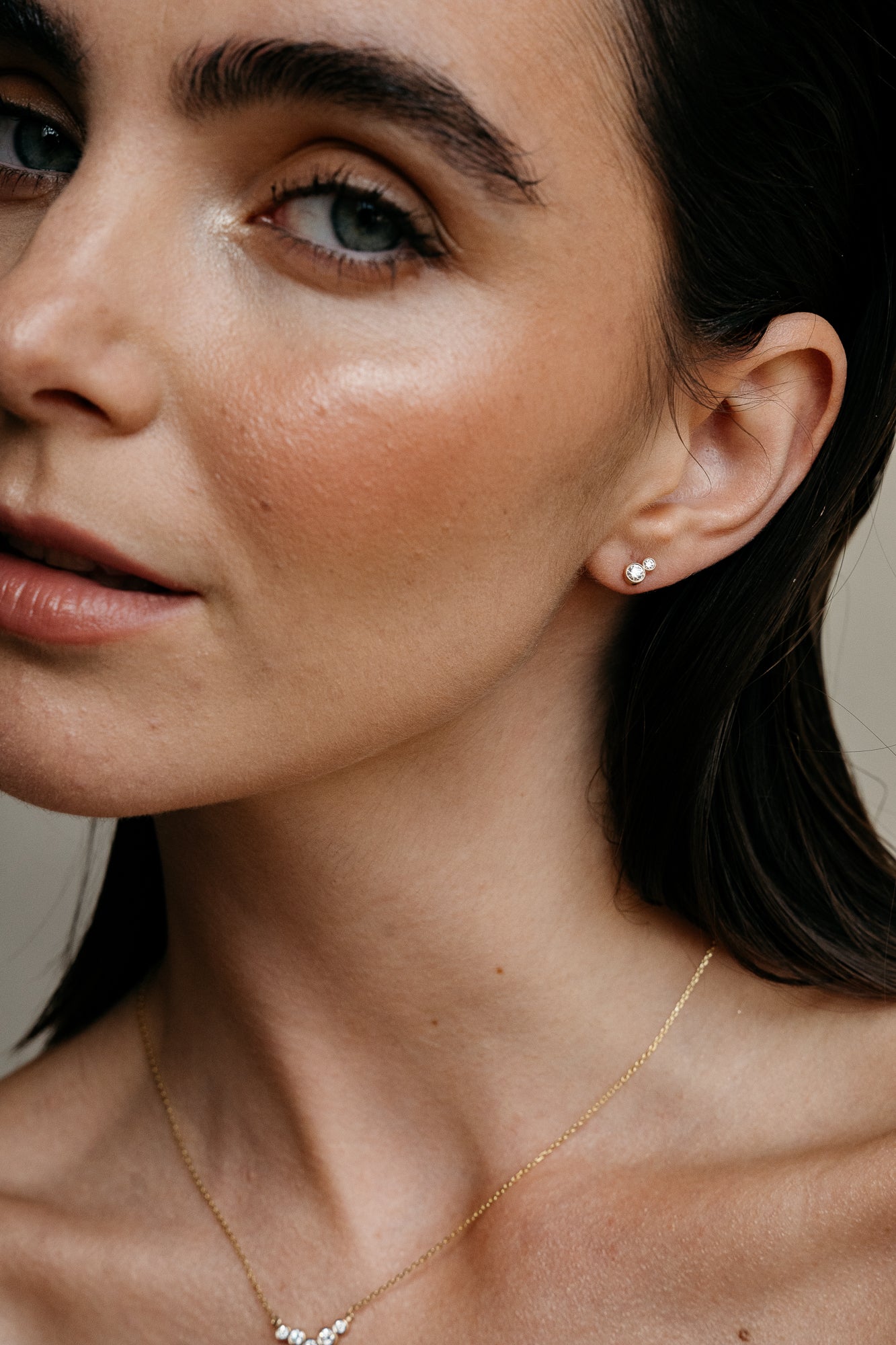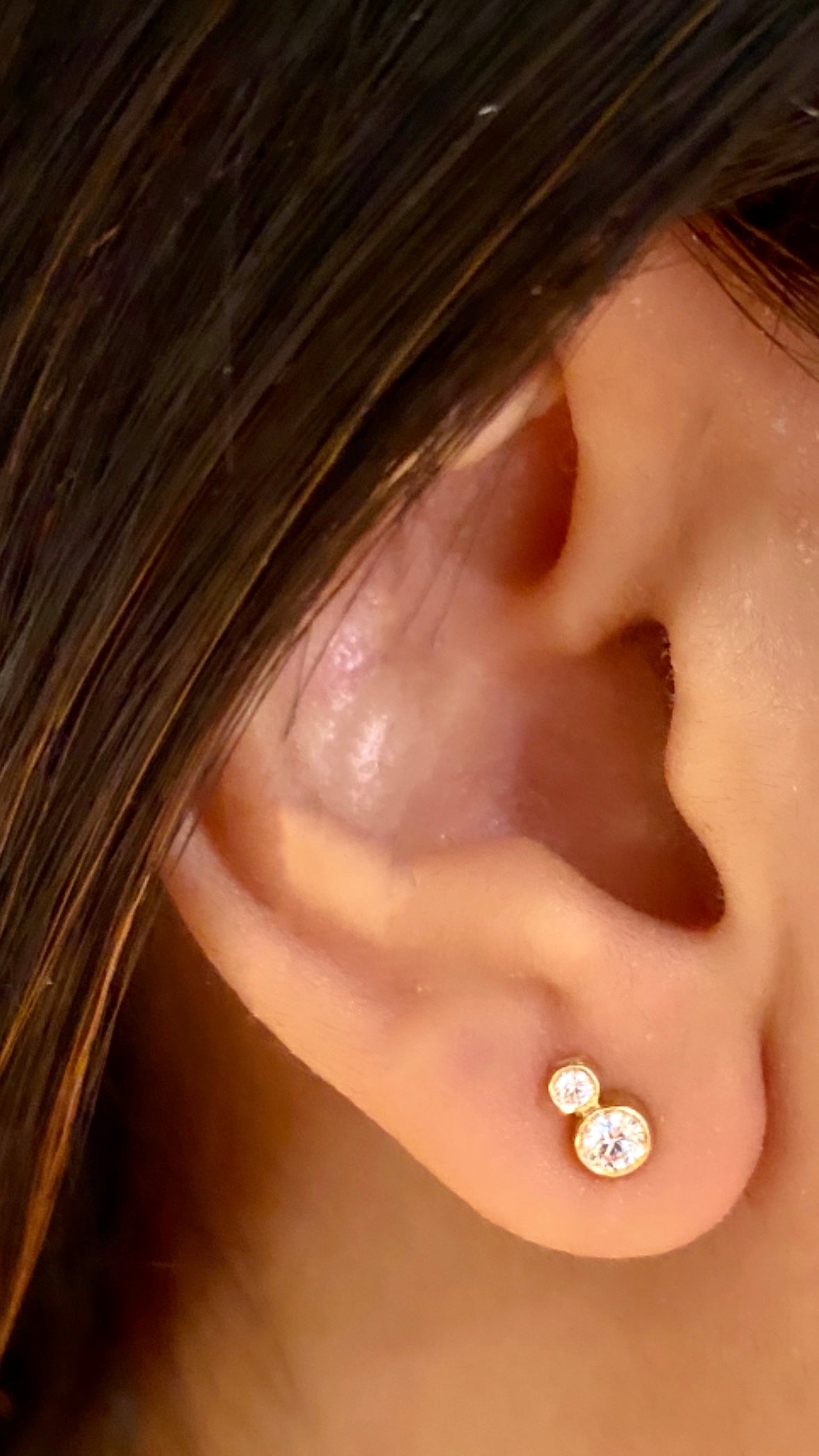 Our Scintilla Twilight Studs are handcrafted in 18k yellow gold with two round brilliant-cut diamonds worn beautifully alone or stacked.